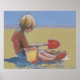 Um garotinho brincando na areia com uma pá. Este menino doce está brincando na praia com sua pá vermelha brilhante. Você tocou na areia quando criança? Esta é uma bela pintura de um menino brincando na areia; é um clássico bebê de areia brincando na praia. O garotinho está vestindo troncos azuis de natação, tem cabelos loiros, e está feliz brincando sozinho, totalmente concentrado em construir seu forte de areia. Talvez ele se pareça com seu garotinho brincando na areia. É um dia de praia - um dia maravilhoso de praia com muita água salgada para brincar, e um mundo de areia de praia para encontrar conchas, castelos e fortas esculpidos, e pregar ao sol. O garotinho está brincando na areia da praia, pronto para levar seu balde laranja até a beira do surf para enchê-lo de volta com água salgada. Este é o presente perfeito para o batedor de praia em sua vida, e para a pessoa que ama o oceano. É uma memória excelente da nossa juventude passada à beira-mar, ou talvez se pareça com o seu próprio filho ou neto na praia. A imagem é baseada em uma pintura chamada "Minha pá" pela artista da Flórida Mary Hubley.