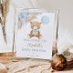 Podemos esperar que o bebê chegue! Este lindo ursinho temático de boas-vindas é certamente colocar um sorriso nos rostos dos seus hóspedes! O esquema de cores azul, castanho e bege torna este design perfeito para um chá de fraldas de menino. Personalize as marcas com seus detalhes e, se quiser reorganizar o estilo e posicionamento do texto, pressione o botão "Clique para personalizar mais".