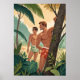 Duas caras felizes na floresta tropical. Uma ilustração de poster no estilo vintage.