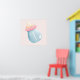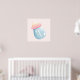 Poster com uma imagem fofa de uma garrafa de bebê azul-claro com uma jante rosa.
