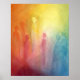 Bright spiritual watercolor aquarel painting of seven people gathering in the light of the colors of the rainbow.