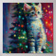 Gatinho de Natal, árvore de Natal e luzes. Arte gerada por IA fofa.