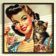 Poster Gatinho e Garota Retro Bonita