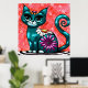 Poster Gatinho Whimsso Sentado em Rã Teal Floral