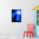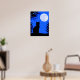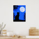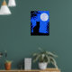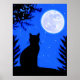 Poster numa silhueta de um gato, olhando para uma lua de cheio num céu estrelado azul profundo