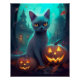 Póster Gato Azul Russo Halloween Com Pumpkins Assustado