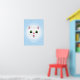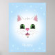 Rosto engraçado de gato branco e engraçado com estrelas em azul claro. O texto pode ser personalizado.