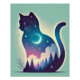 Entra num mundo de magia com este poster de Exposição Dupla Celestial de Gato único. Essa design encantadora combina a elegante silhueta de um gato com uma paisagem sonhosa, com lua crescente brilhante, estrelas cintilantes, e uma floresta serena banhada em tons suaves e vibrantes. Uma mistura perfeita de fantasia e estilo moderno, fazer que seja algo que deve ter tanto para os amantes de gatos como para os entusiastas da arte.