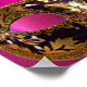 Gato branco preto, carinhoso, natural e esmaecido, com chapéu de Arlecchino em rosas vibrantes, roupas de seda fuchsia .Legant, branca, colorida, artística e mascarada com penas pavorosas da nossa Coleção com fantasia floral dourada, e florescimento roxo, vermelho, violeta brilhante. Pintura a aquarela original, fotografia, colagem digital e Design gráfico por Búlgaro Lumini - Baldesign3d (c)