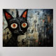 Abstrato ilustra o desenho animado, gato preto surreal emotivo no fundo do galão grunge.