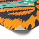 Gato de desenho animado retrô com óculos de sol superdimensionados, segurando uma xícara de café. Cores vibrantes inspiradas nos anos 80 (verde-azulado, mostarda, coral) com fundo texturizado em halftone e um toque lúdico