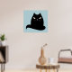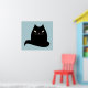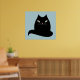 Ilustração de um gato preto-rosado com peso excessivo sobre um fundo azul de ovo de pato. A cor de fundo também pode ser alterada.