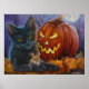 "Halloween Cat and Mouse No. 2" Watercolor Art 18x24 Poster do artista Jean Weiner "Halloween Cat and Mouse No. 2" apresenta um gatinho preto e seu companheiro de camundongo! O gatinho está deitado entre as folhas do outono, próximo a um jack-o-lanterna brilhante. O amigo do rato está sentado entre as pernas dianteiras. A lua é cheio e brilhante no céu noturno. Este design certamente encantará qualquer tipo, gato, rato ou entusiasta do Halloween! Feliz Dia das Bruxas!