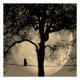 Lua de cheio fantástica com um gato preto em fio olhando para ele
