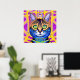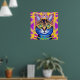 Legal gato colorido com intenso olhar AI gerado trabalho de arte poster.