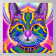 Poster Gato Místico Único Verde e Azul