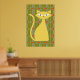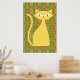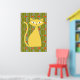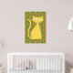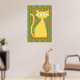 Esta poster divertida apresenta um design ousado retrô inspirado em tons de laranja, verde-oliva e azul com um gato amarelo brilhante.