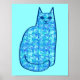 Poster Gato Moderno do Século médio, Turquesa e Marinho