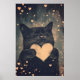 Poster Gato Negro com Coração Ouro - Amor Louco de Gato