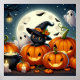 Poster Gato Negro e Fantasma em um Patch de Abóbora
