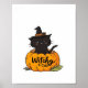 Poster Gato preto bonito em abóbora com chapéu de bruxa,