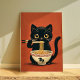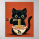 Poster Gato Preto Cinto Comendo Ramen Kawaii Noodle Wall