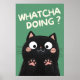 Adicione humor à decoração da casa de banho com esta engraçada poster de gato preto! Apresentando um gatinho de desenho animado perguntando "O que você está fazendo?", esta adorável arte de parede é perfeita para amantes de gatos. Ideal para banheiros, quartos ou escritórios — uma mistura perfeita de humor de gato fofo e engraçado para iluminar qualquer espaço.