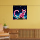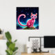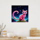 Poster Gato rosa fantástico na floresta mágica estelar no