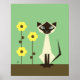 Design de arte estilizada do gato siamês com flores amarelas sobre fundo bege. As cores podem ser personalizadas