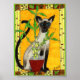 Poster Gato Siamês com Mini Arte Folk da Planta Bamboo