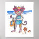 Esta é uma pintura mestiça de um gato branco em óculos de sol na praia.