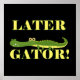 Um jacaré verde giro com texto amarelo que lê Mais Tarde Gator! Mais tarde, T-shirts do Gator, bolsas, canecas, ímanes, correntes-chave, guardas, cartões, autocolantes, botões, travesseiros e muito mais.