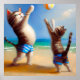 Apresentando um design de dois gatos brincando com uma bola na praia. Esta obra de arte única e cativante combina o encanto e a brincadeira dos gatos com a diversão de um dia na praia. Os detalhes intrincados e as cores vibrantes dão vida a esta cena. Não perca sua chance de ter essa peça de um tipo! Colete todo o conjunto de gatos antropomórficos!