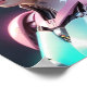 Uma jovem de cabelo cor-de-rosa se move suavemente, exuando uma mistura de estilo futurista e animado. Seu traje detalhado apresenta elementos metálicos e sotaques brilhantes, acrescentando um toque de ficção científica.