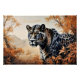 Uma onça majestosa emerge entre a folhagem em tons quentes, exuando força e mistério. Seu olhar piercing revela a essência indomada da natureza, transformando o trabalho de arte em tributo ao poder animal e à beleza vibrante da vida na natureza.