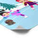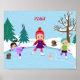 Poster de patinagem de gelo de uma menina na cena de inverno com amigos animais assistindo.