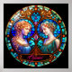 A pintura é uma impressionante representação do símbolo gemini zodiac, apresentando os gêmeos icônicos em toda a sua glória. Os gêmeos são representados como duas jovens mulheres, cada uma com personalidade e estilo distintos. Um gêmeo é vestido de prata, com cabelo tão brilhante quanto a lua, enquanto o outro é enfeitado de ouro, com cabelo vermelho feroz que parece brilhar como o sol.