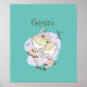 Poster de quarto para crianças. Gêmeas brancas, símbolo Gemini em fundo aqua com texto Gemini personalizável