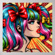Garota adorável do estilo quadrinho de pop-arte com rabos e arcos em seu cabelo.