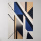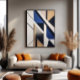 Linhas e formas entrelaçam-se em uma peça precisa de cores neutras e tons de azul, criando o equilíbrio entre ordem e abstração. A trabalho de arte transmite sofisticação, modernidade e contemplação, como se cada ângulo revelasse um novo caminho para o olho.