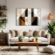 This abstract work blends geometric shapes in earthy and neutral tones, crafting a harmonious balance between structure and softness. The intersections of triangles and rectangles suggest movement and depth, inviting serene contemplation of visual order in a play of light and shadow.