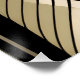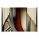 A mesmerizing abstract composition exploring the tension between straight lines and fluid curves. Vertical stripes in shades of red, gold, and black create a dynamic visual rhythm, while curved geometric forms traverse the composition, generating depth and movement. The artwork plays with perspective and optical illusion.