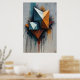 Dive into the raw energy of urban art with this striking abstract piece, 'Urban Prism: Geometric Graffiti Abstract.' This captivating artwork features a dynamic composition of bold, angular geometric forms – a large dominant prism in warm, rusted orange tones and a smaller, cool teal-blue counterpart – seemingly emerging from or breaking away from a stark, textured background.