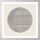 This minimalist art print features a large gray circle partially filled with a hand-drawn tribal pattern, creating the illusion of a lunar eclipse. The geometric, tribal pattern is made up of lines, squares, and triangles. This print comes in 3 color variations, and is bold and modern enough to be featured in a loft apartment, or in a man's living room or office.