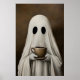 Poster Ghost Drinking Coffee Print, Ghost Tea Whimsical