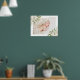 Arte personalizada para o ninho de infância com sua foto de bebê recém-nascido, estatísticas de nome e nascimento ou outro texto personalizado. A Elegante design feminina tem uma borda floral de cor d'água pintada com flores brancas e folhagem verde e dourada. Use as ferramentas de design para editar as fontes de texto e as cores ou adicionar mais fotos para criar um tipo de manutenção ou dom.