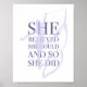 decoração de arte de parede de ginástica roxa, Ela acreditava que podia e assim ela fez - arte de palavras decoração de quarto de menina.