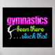 Poster de ginástica com um gráfico brilhante com o texto, "ginástica - esteve lá...Apanhei isso". Design divertida com texto azul brilhante, verde e rosa e uma silhueta de ginasta! ©gollygirls.com