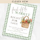 Sage Gingham Fresco da Receita do Mercado para o Chá de panela do Amor. Disponível digitalmente e impresso. Uma tipografia informal em castanho para as palavras "fresco do" que complementam o resto do texto que você pode facilmente personalizar. Com um gingham verde junto ao texto.