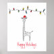 Imagem de girafa desenhada à mão com o chapéu vermelho de Papai Noel, uma série de luzes de férias e texto personalizável de "Feriados Felizes"